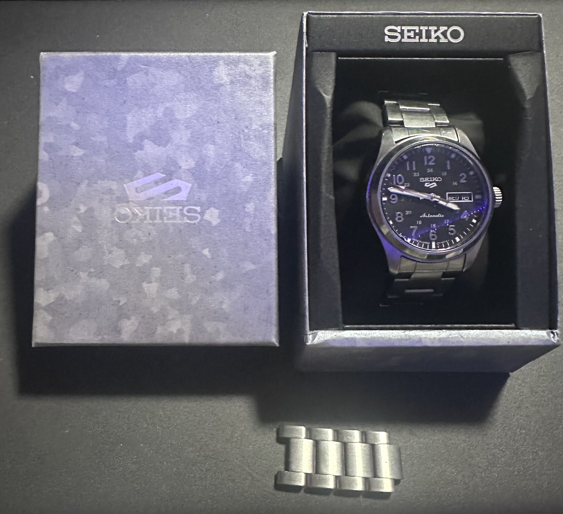 Used Seiko 5 sprg27 field watch has scratches and can use new crystal