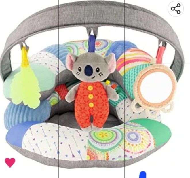 Infantino 3-in-1 Tummy Time, Sit Support & Mini Gym - Removable Toy Arch - Musical Koala Pal(missing) Soothing Leaf Teether (missing)& Peek-and-See Mirror - for Babies, 0M Pick up Only! MISSING PARTS (toys)
