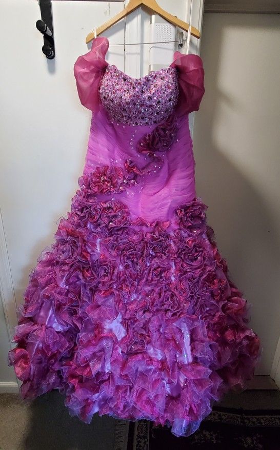 New Jovani Prom Dress 71441 UK Size 22 equals US Size 18 REDUCED WAS $150 NOW $100 Brand New & Beautiful Dress! Beaded Bodice with Ruffled Rosette Skirt Prom Dress 71441, Beaded Bodice with A Sweetheart Neckline, Large Ruffled Rosette Skirt. international sizing. In terms of body measurements, a US size 22 dress would typically fit a bust of 49-51.5 inches, a waist of 42.5-45 inches, and a hips measurement of 50-53 inches, UK sizing equals US Size of 18. ●Harper Woods - 48225 Zip Code between Harper and Beaconsfield area, super nice neighborhood, for local pick-up - cash and carry please. ●PayPal accepted to secure/hold items quickly. ●If using PayPal please note kindly add 3% to total please. And "items purchased" need to be picked up within 24 hours, or hold fees may be incurred. ●No Holds - FCFS - except electronic purchases, ie, PayPal or CashApp. ●check our other items for sale ●sold as-is. ●If interested please call or text me John @ five eight 6 two one 6 zero 4 four nine