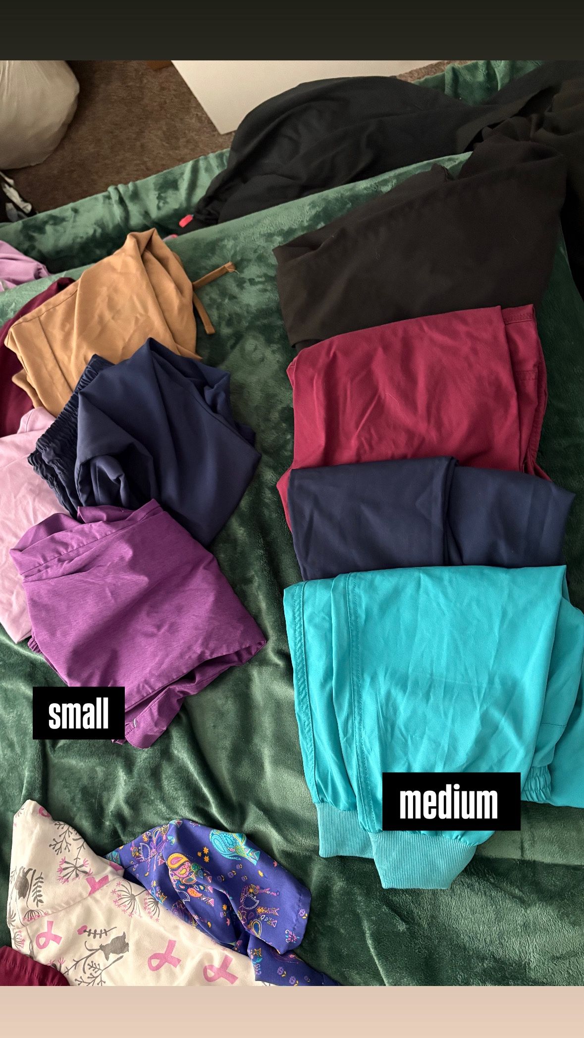scrubs sizes small- large tops and bottoms i have SO many. 3$ A PIECE