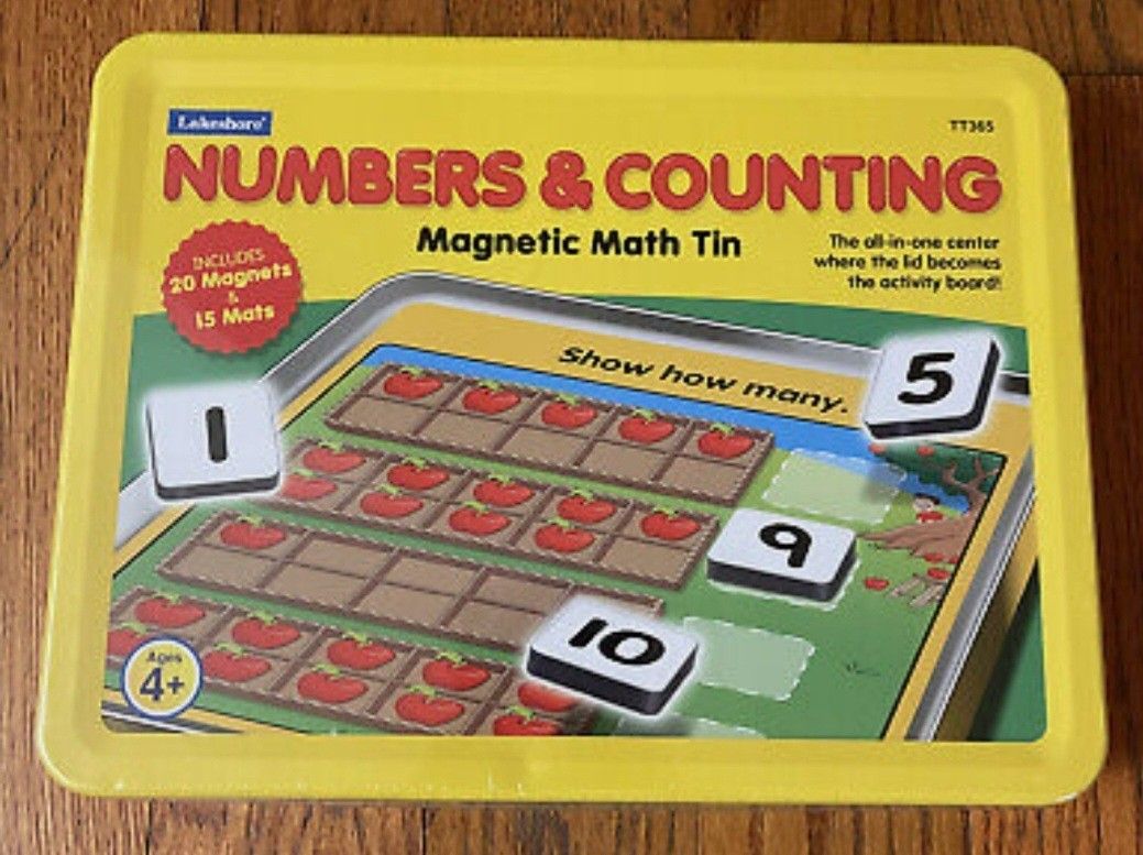 The all-in-one center where the lid becomes the activity board. 20 number magnets and 15 game mats included. Excellent condition. Sells for $35 on several sites.