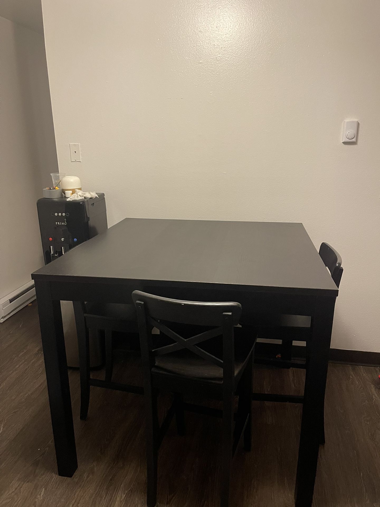 Comes with 4 chair it’s a nice set but my toddler climbs it and I need something shorter. One of the chairs has a crack but doesn’t affect it in any way
