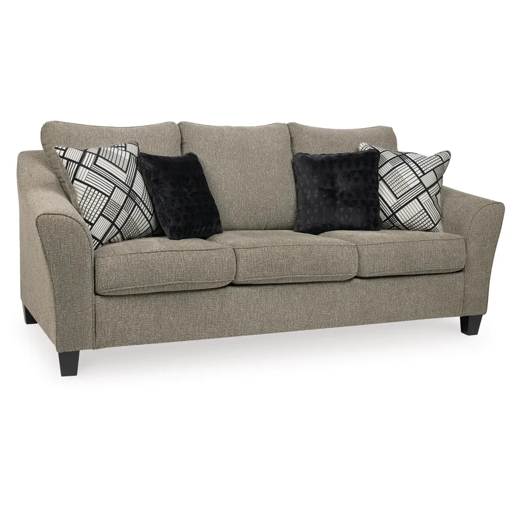 We offer No Credit Needed Programs, Layaway, Fast Delivery or even Same Day Delivery for a fee! We also accept Cash, Credit Card, Venmo, Cash App, Zelle in stores! This easy-elegant sofa sets the scene for a modern space full of casual flair. Enticing with a textured taupe upholstery with a rich chenille feel, this chic sofa masters the art of neutrality. Gently flared arms, plush seat cushions and decorative designer pillows perfect the feel-good experience. Call/Text us at 571-462-7992 Buy Online on our website at JMDFurniture.com or Unlike other stores, we have stores on DMV! Visit Our Physical Locations! JMD Furniture 2346 Iverson St. Temple Hills, MD 20748 JMD Furniture 1001 Fairlawn Ave. Laurel MD 20707 JMD Furniture 7702B-D Richmond Hwy. Alexandria, VA 22306 The Hours are Monday to Saturday - 10 am to 8 pm Sunday - 10 am to 6 pm Explore our diverse furniture and mattress collection! Discover Living Room Sets, Bedrooms, Dining Room Sets, Sectionals, Sofa Sets, Sofa Love Seats, Double Pillow Top Mattresses, Rugs, Carpets, Wall Art, Lamps, Dressers, Chests, Nightstands, Beds, Sleigh Beds, Platform Beds, Headboards, Rails, Box Springs, and a wide selection of other items