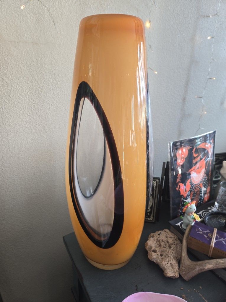 Gorgeous blown glass vintage vase. Approx 2' 4"tall, heavy weight, diameter 5". Unique. Handmade.