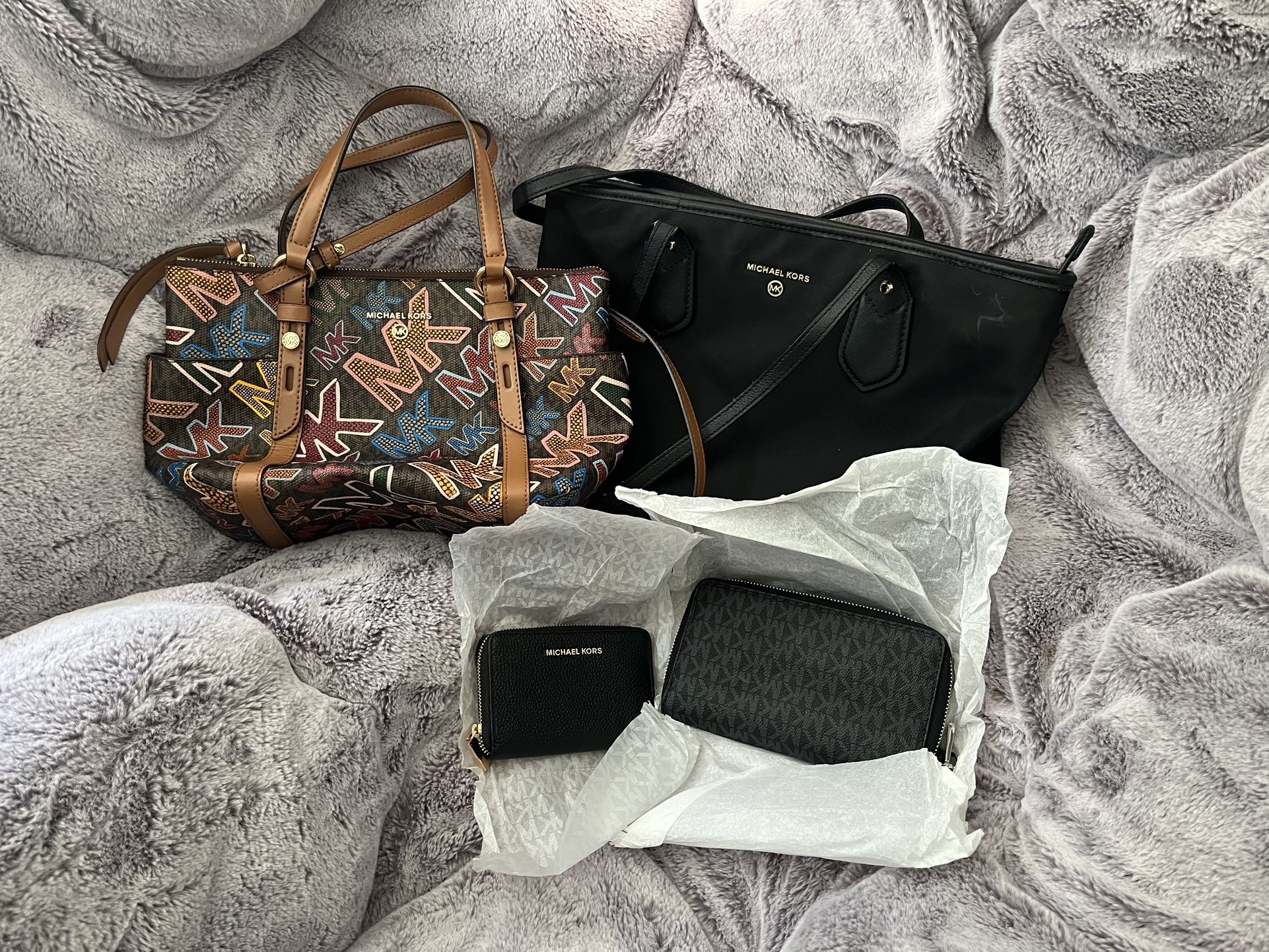 $70 for all 4 together or individually: • 1 small wallet (brand new never used) - $30 • 1 large wallet (used but good condition) -$20 • 1 medium brown purse (brand new never used) - $30 • 1 large black purse (used only minor wear on edge of outside inside is good as new) -$25 Negotiations are welcome! Porch pick up Cash or Zelle
