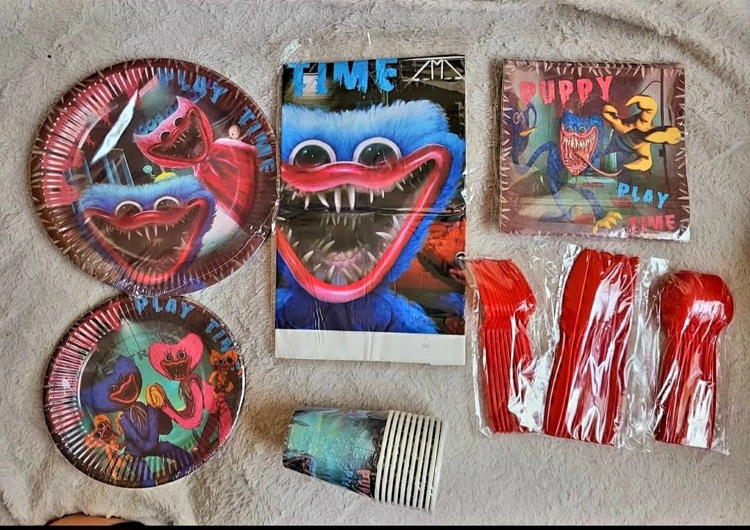Set includes: 10 cups, 10 plates (7 inches), 10 plates (9 inches), 20 tissues, 10 forks, 10 knives,10 spoons 1 tablecloth, 10 Guests. Bell Gardens $25 Firm price ✅️✅️✅️