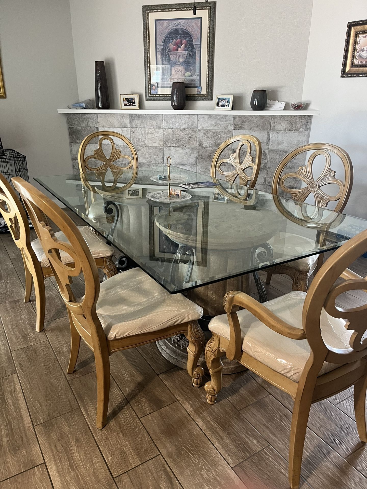 Beautiful 6 chair, glass table dining set with buffet.. in good condition.