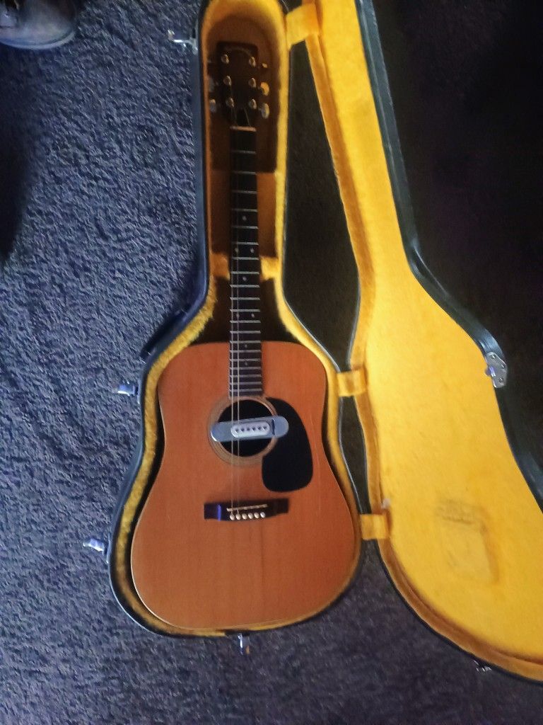 Takamine F-370s with vintage DeArmond soundhole pickup for an acoustic guitar. Couple cracks in guitar body but not too bad that they cant be fixed.