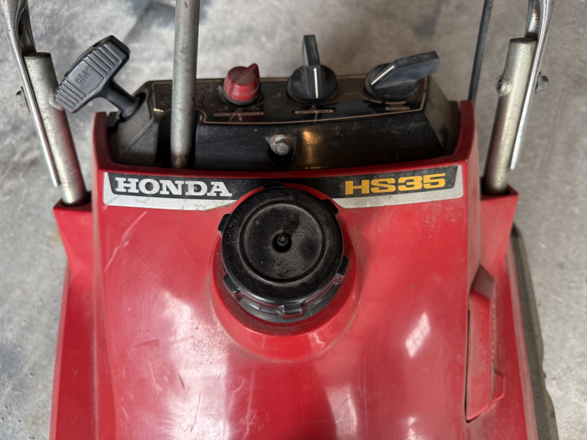 Fires up without issue every time. Freeing up room in my garage. The Honda HS35 is a compact, single-stage gasoline-powered snow thrower designed for clearing light to moderate snow from paved surfaces like driveways and walkways. It is well-regarded for its lightweight design and ease of maneuverability. Core Specifications & Design * Type: Single-stage snow thrower. Unlike two-stage models, the HS35 uses its rubber-tipped auger to both pull in the snow and discharge it through the chute in one motion. * Power: Typically powered by a Honda 4-stroke engine (consistent with Honda's reputation for easy starts and reliability). * Clearing Width: Approximately 20 inches, making it ideal for standard suburban walkways and small-to-medium driveways. * Auger System: Features high-speed rubber-tipped paddles. This "auger-assist" drive means the rotating paddles make contact with the pavement, helping to pull the machine forward while providing a clean, "to-the-pavement" finish. Key Features * Compact & Lightweight: Designed for easy handling and safety, it can be easily stored in a garage or shed without taking up much space. * Manual Controls: Includes a manual recoil starter and an adjustable discharge chute to control the direction and distance of the thrown snow. * Auger Clutch Lever: Squeezing the lever engages the snow-throwing mechanism. Releasing the lever stops the auger for safety. * Fuel Requirements: Designed to run on standard unleaded gasoline (86 pump octane or higher). Maintenance Considerations * Rubber Paddles: Because the rubber paddles contact the ground to move the machine, they are a wear item and will eventually need replacement to maintain clearing performance. * Oil and Spark Plug: As a 4-stroke engine, it requires regular oil checks and seasonal spark plug inspections to ensure reliable starting in cold weather. * No Mixing Required: Unlike many older single-stage blowers that used 2-stroke engines, the HS35 does not require mixing oil and gas. Best Use Case The HS35 is most effective for: * Fresh snowfalls of 3–6 inches. * Smooth, paved surfaces (as the rubber paddles can pick up stones on gravel drives). * Users who want a machine that is easy to push and pull compared to larger, heavier two-stage blowers.