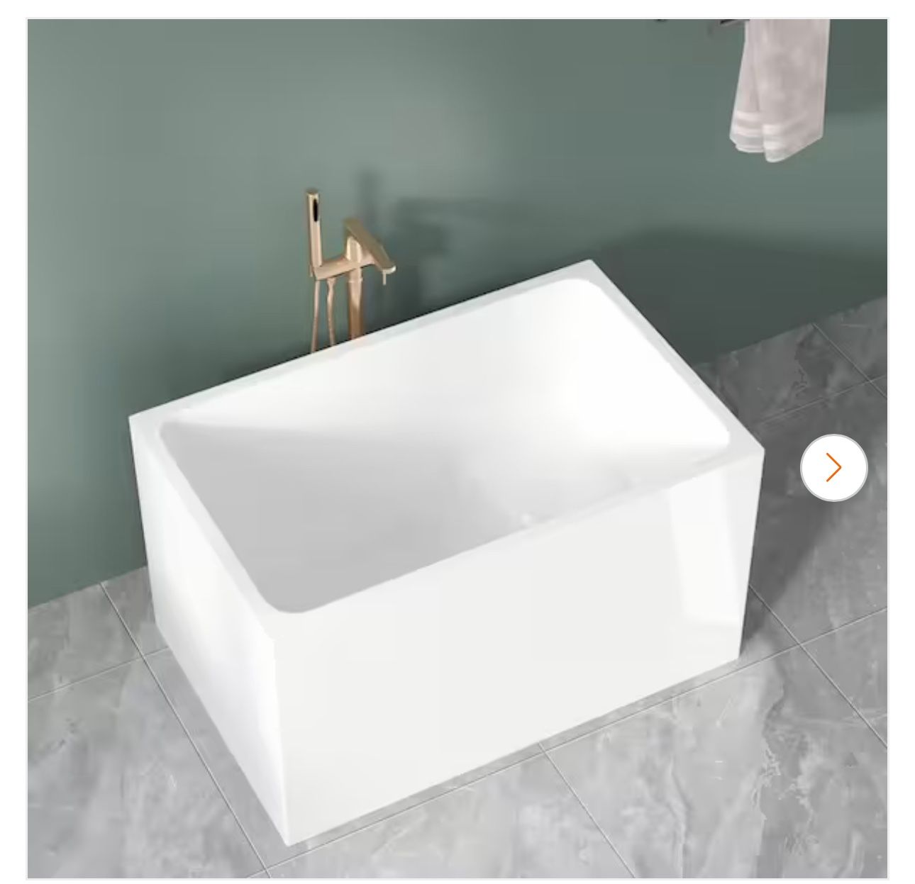 43 in. x 27 in. Acrylic Freestanding Rectangle Soaking Bathtub in Gloss White with Seat Chrome Overflow and Pop-Up Drain
