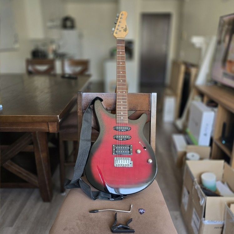 Complete electric guitar setup, everything you need to start playing today. Ideal for beginners, students, or anyone looking for a dependable and affordable setup with no extra shopping required. All items are in good working condition with light cosmetic wear from normal use. I’m willing to meet locally or drop off if nearby. Included in the Bundle: Rogue RR100 Electric Guitar Red-to-black sunburst finish with contoured body Strat-style configuration with H-S-S pickups (humbucker + 2 single coils) 5-way pickup selector, 1 volume knob, 1 tone knob Smooth maple neck, rosewood-style fretboard Fully functional; only minor wear — sounds great Model: RR100PK | Serial: WMSC0(contact info removed) --- Rogue G10 10-Watt Amplifier Perfect for home practice Clean and overdrive modes Volume, Bass, and Treble controls 1/4” headphone jack for silent practice Model: G10 | Serial: (contact info removed) Includes power cable --- Accessories (Included): Rogue-branded gig bag (zipper front, shoulder strap) Guitar strap Whammy bar (tremolo arm) Capo 1/4” instrument cable 1/4” headphone adapter Guitar pick