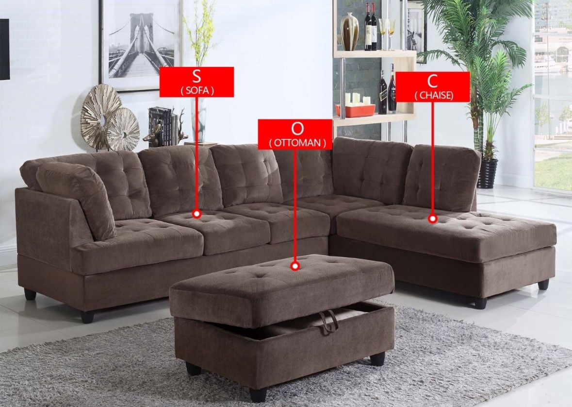 Espresso Velvet 3-Piece Couch Living Room Sofa Set