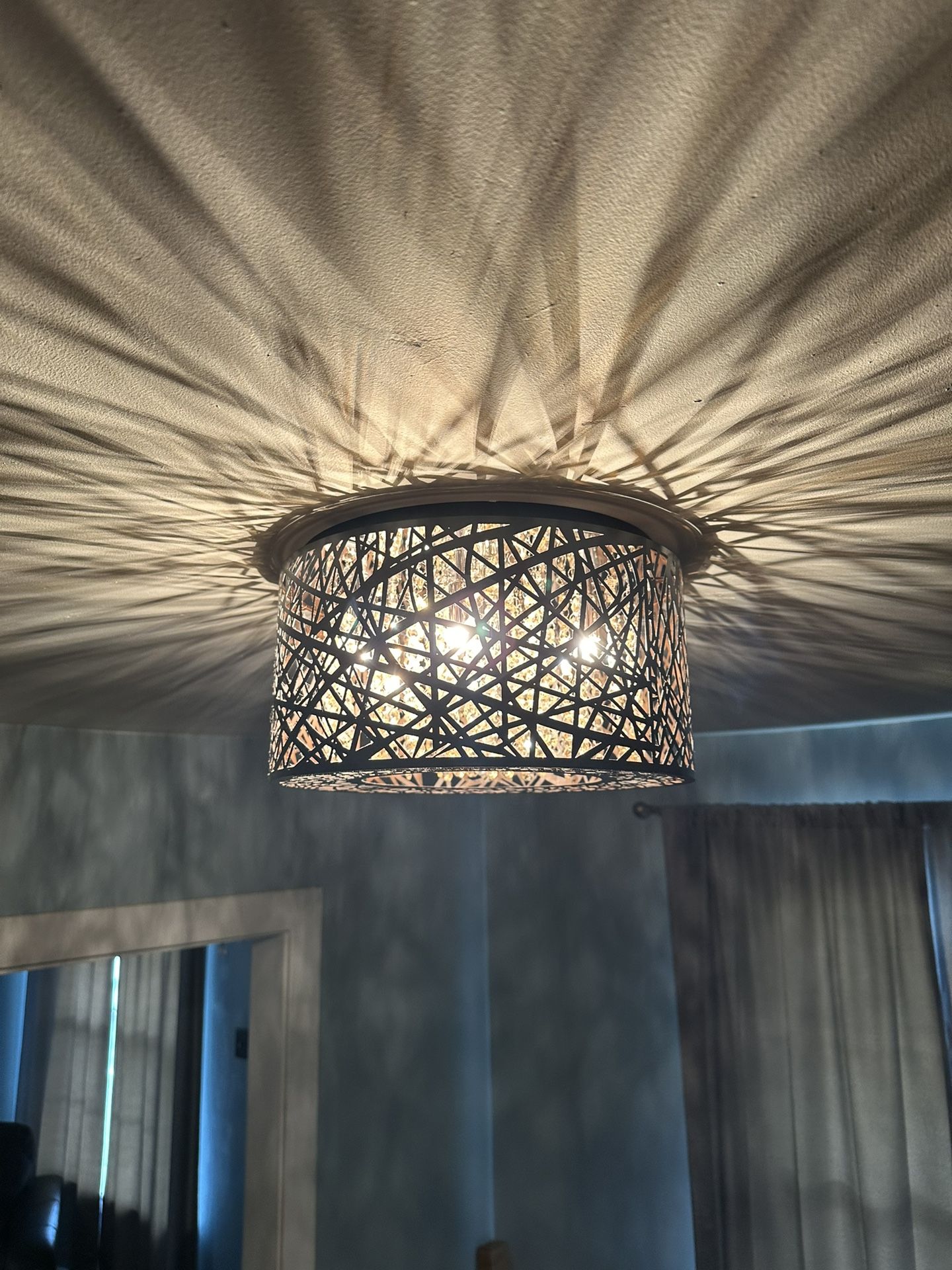(2) 16 in flush mount drum ceiling lights Both lights work great, just redoing the rooms they were in Dark Bronze with chandelier interior