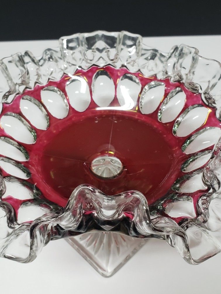 Westmoreland Scalloped Crimped Clear to Cranberry Glass Compote