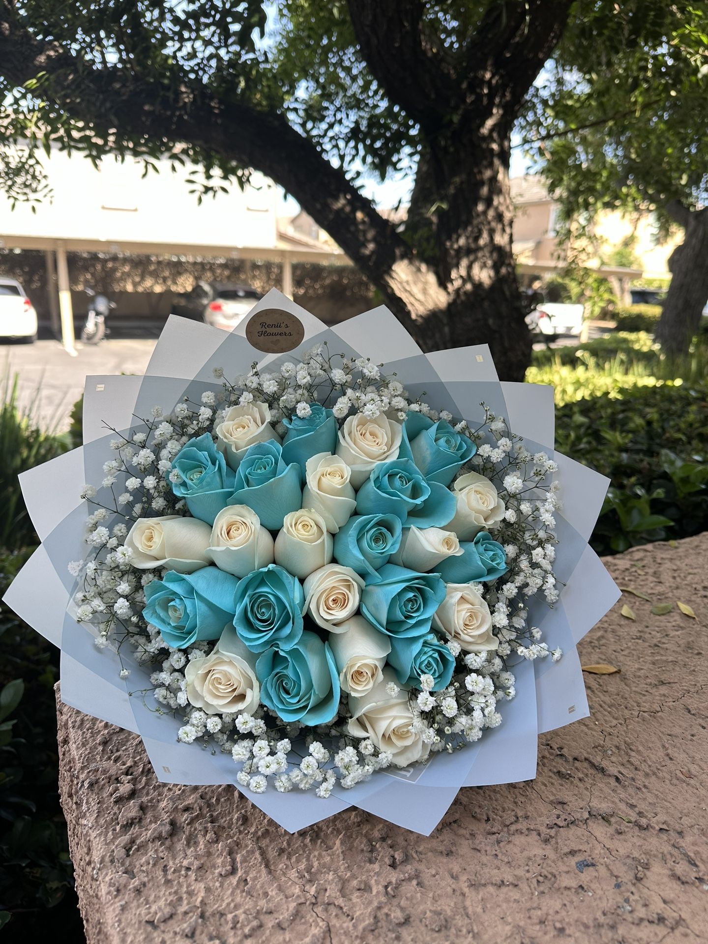 25 roses with baby breath 🩵✨