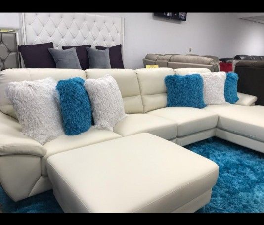 *Ad Special*---St Tropez Sophisticated Leather Sectional Sofa W/Ottoman---Delivery And Easy Financing Available 👏