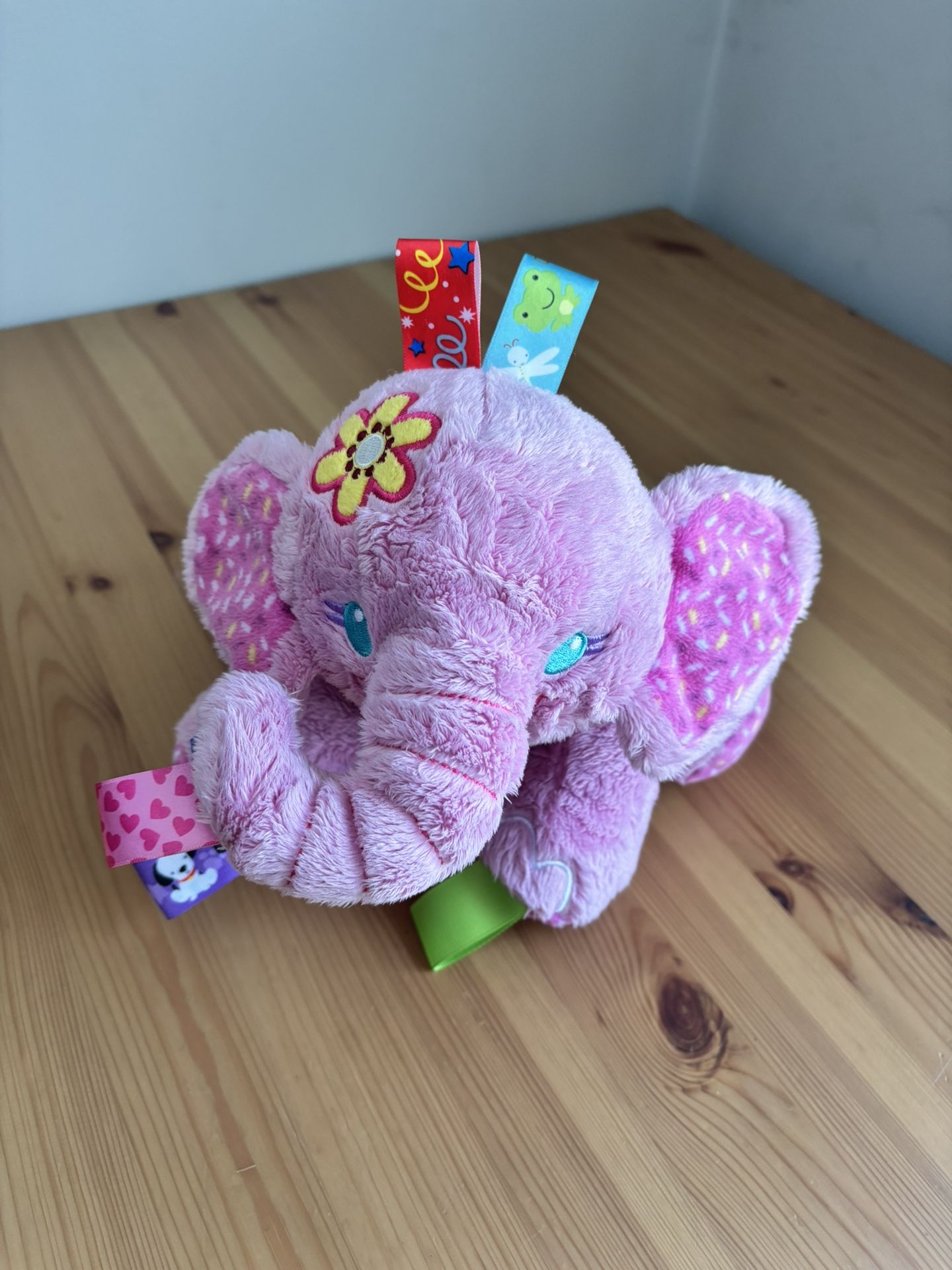 Taggies Pink Elephant Lovey Plush Rattle Toy Stuffed Animal Ribbons 10" Pink