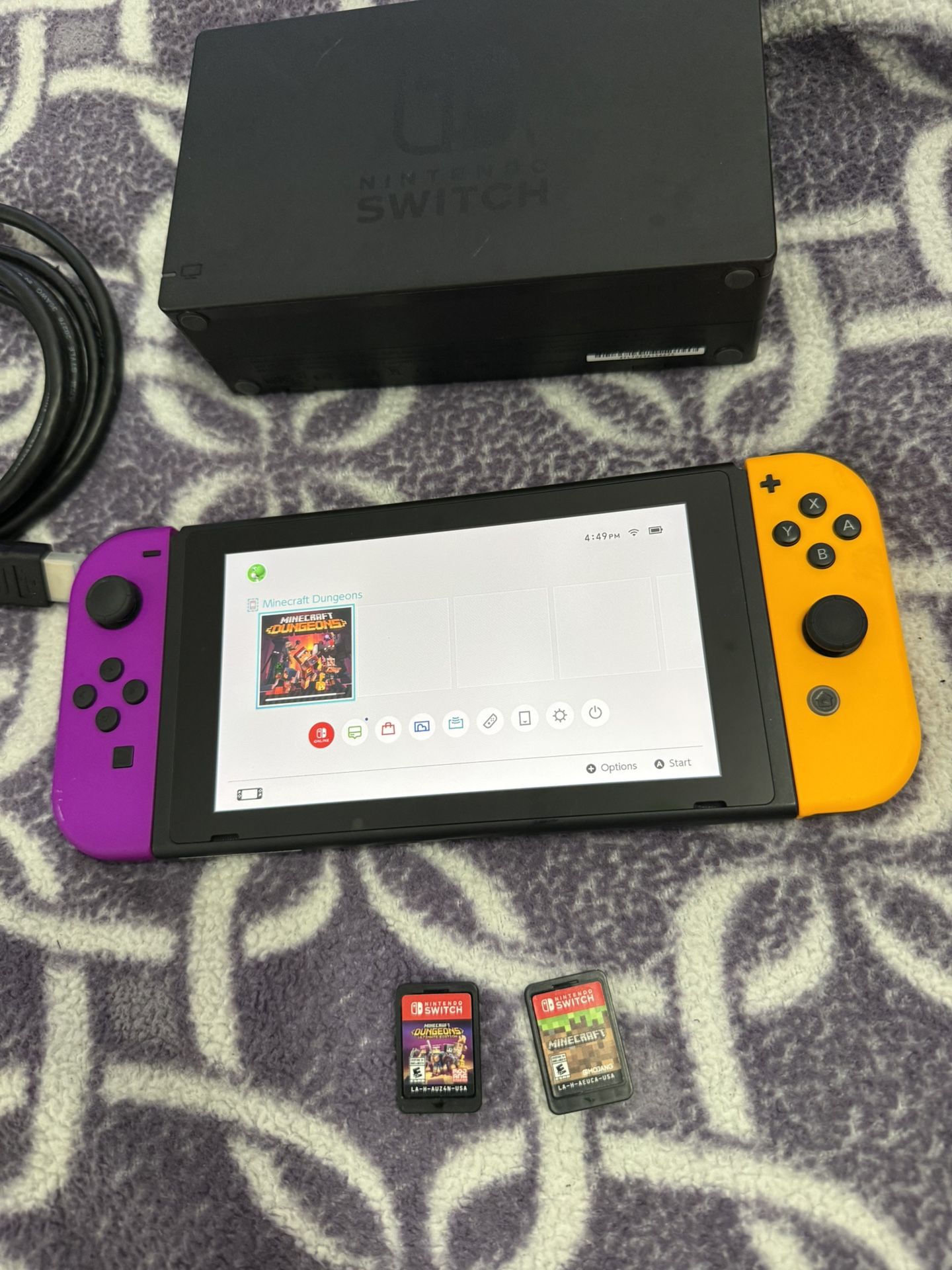 Nintendo switch with 2 games works great has dock hdmi cable and a phone charger with adapter lmk