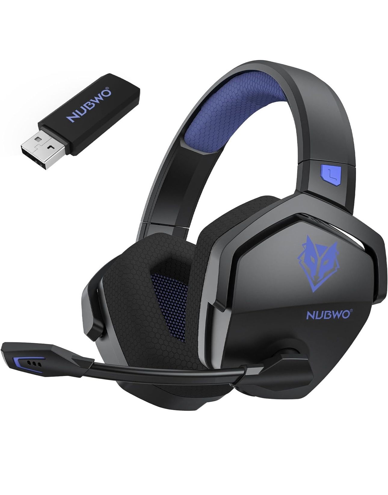 NUBWO Wireless Gaming Headset with Mic for Ps5 Ps4 PC, Zero Interference, 100-Hour Battery All-Day Play, 23ms Sync for Fortnite & Call of Duty/FPS Gamers, Triple Mode All Devices Compatible - Blue