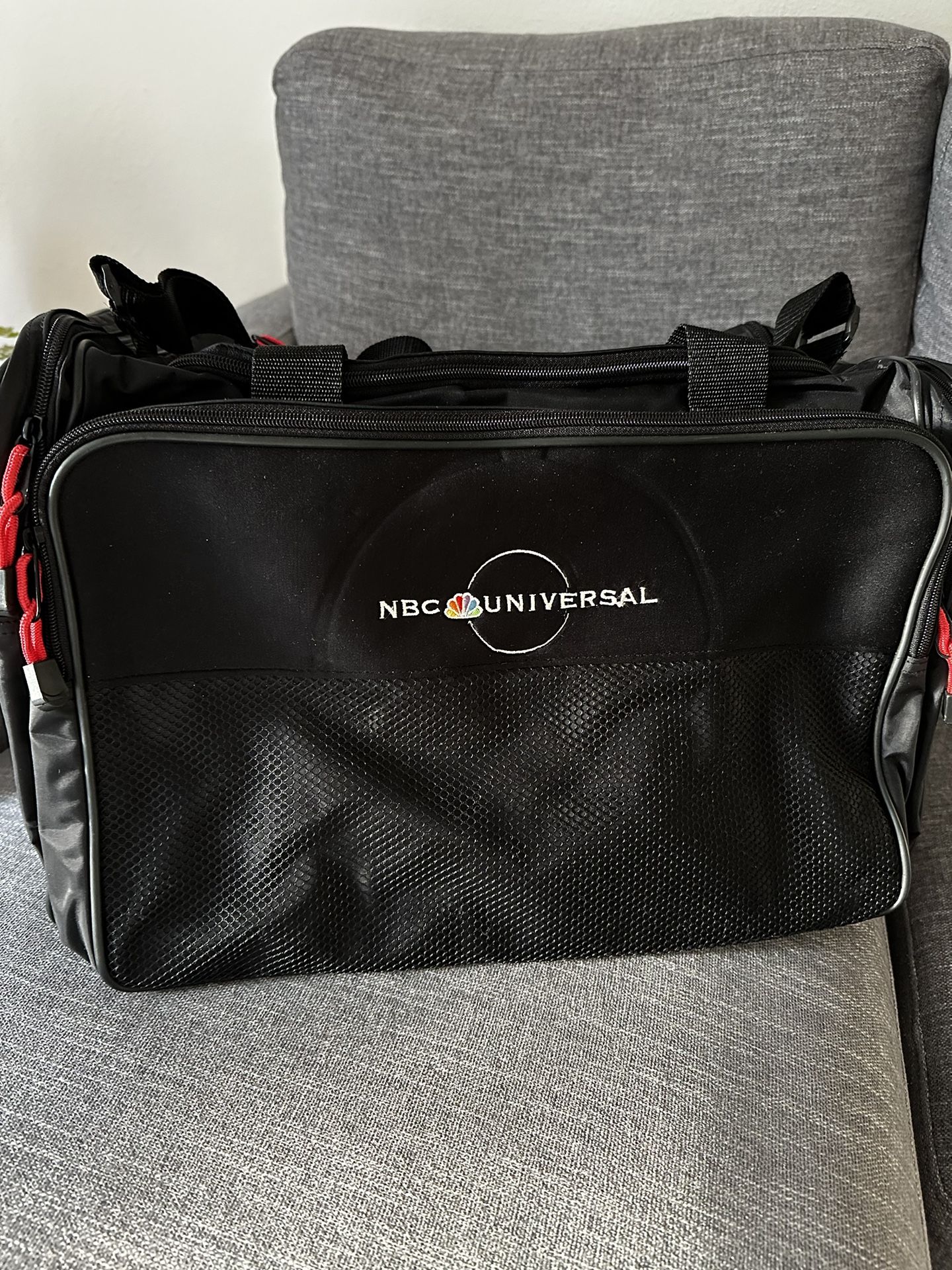 Hi, I’m selling my black NBC Universal-branded duffel bag with zippered compartments, that I no longer need. New and never used. It includes 2 medium sided pockets, 1 big front pocket, and the main compartment. Measuring approximately 18x11x10 inches. Includes handles with shoulder strap. Please be able to pick up from Culver City /Palms area.