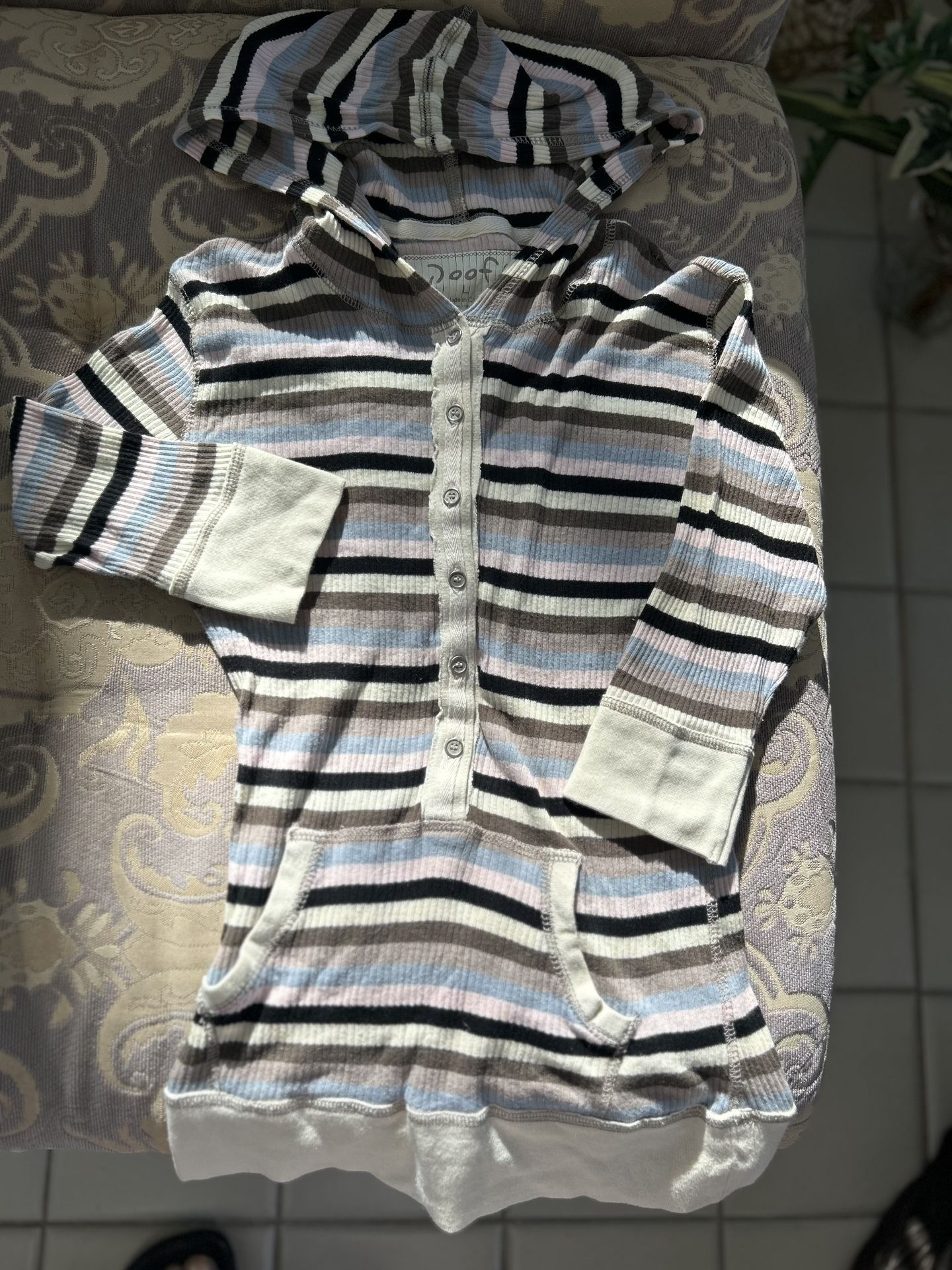 Poof! Striped Hoodie - Black, Blue, Gray sz large pre owned junior sz L