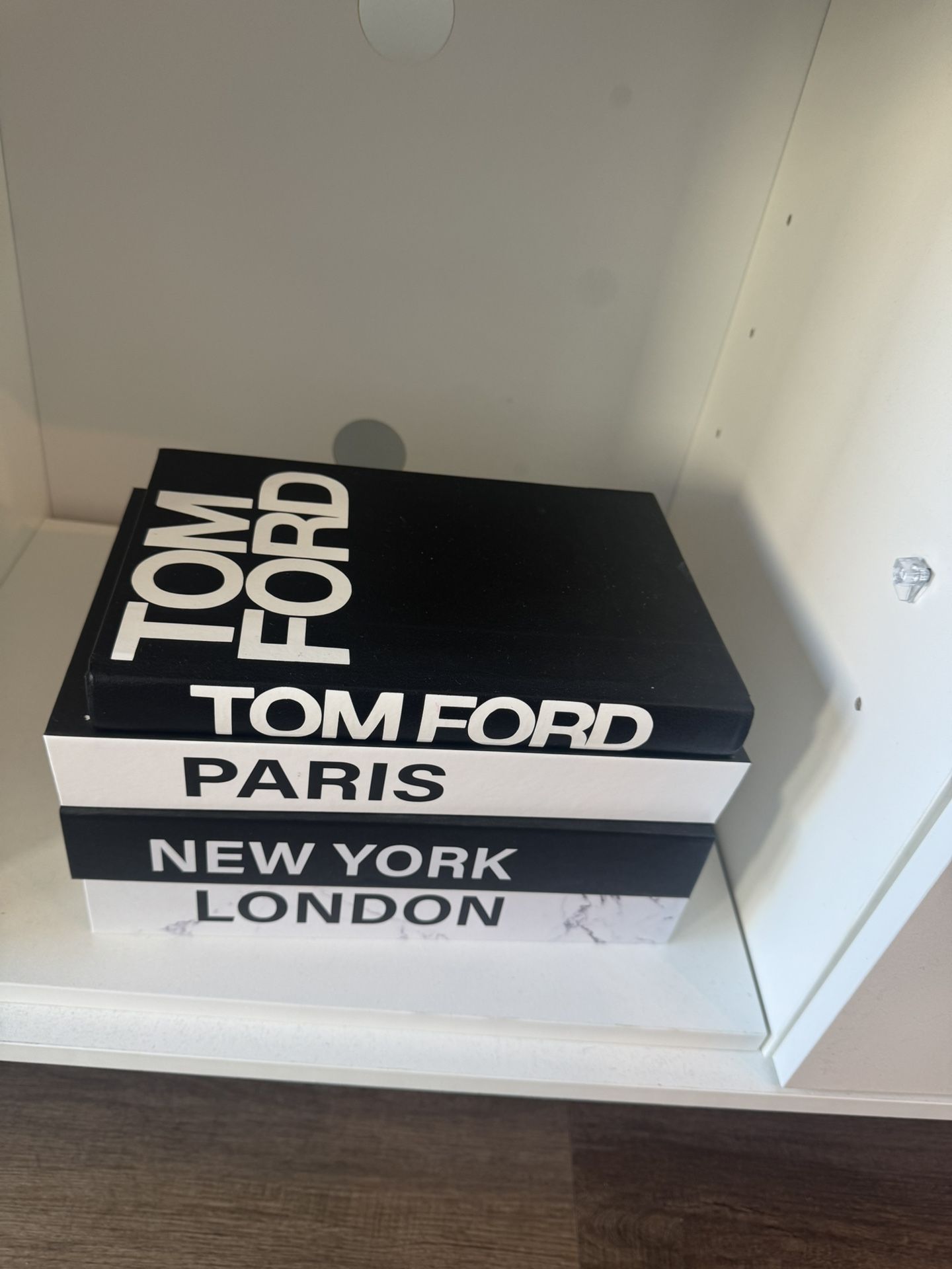 Not real books (card board) Tom Ford book is sticker letters with blank pages Price for all 4