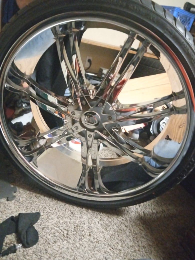 24x10 Borghini BW14 Chrome RWD All 4 wheels. Brand new tires currently all mounted to wheels. Beautiful perfect condition . Hit me up