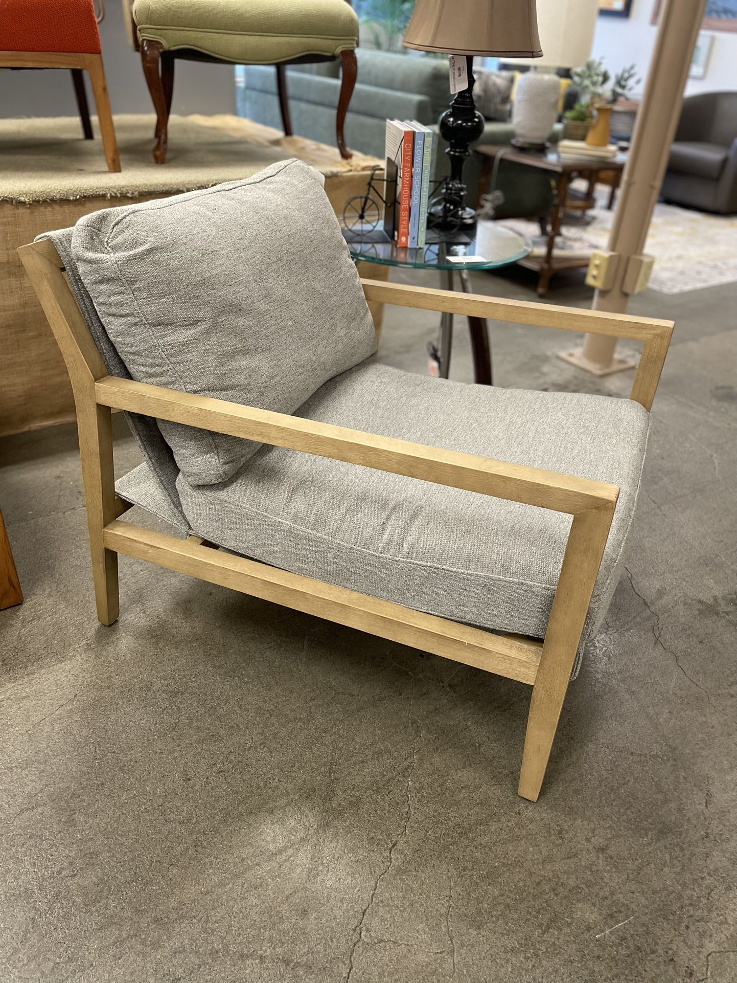 Handcrafted chair in Ash and soft velvety gray fabric. Simple and sophisticated. Classic shape with clean lines and just-right sizing. Dimensions Width 27 1/2" Depth 36" Height 32" Hope Furnishings is the retail program of NW Furniture Bank. We are a nonprofit organization and all of the proceeds from the store are used to help us provide furniture and other necessary household items to local families and individuals in need. All sales are final, so we recommend that you visit our store to view any items that you wish to purchase in person.
