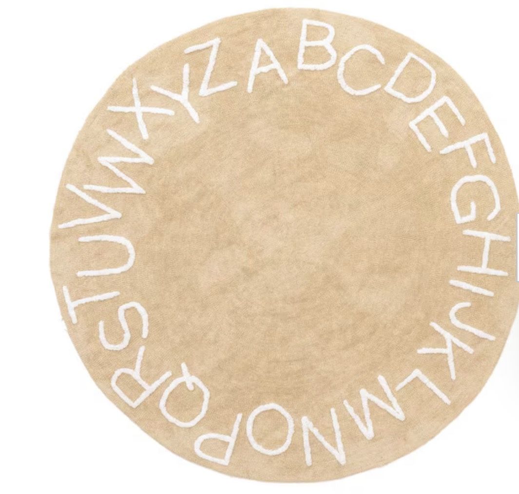 Round Alphabet Rug Beige 4 ft. x 4 ft. Accent Rug