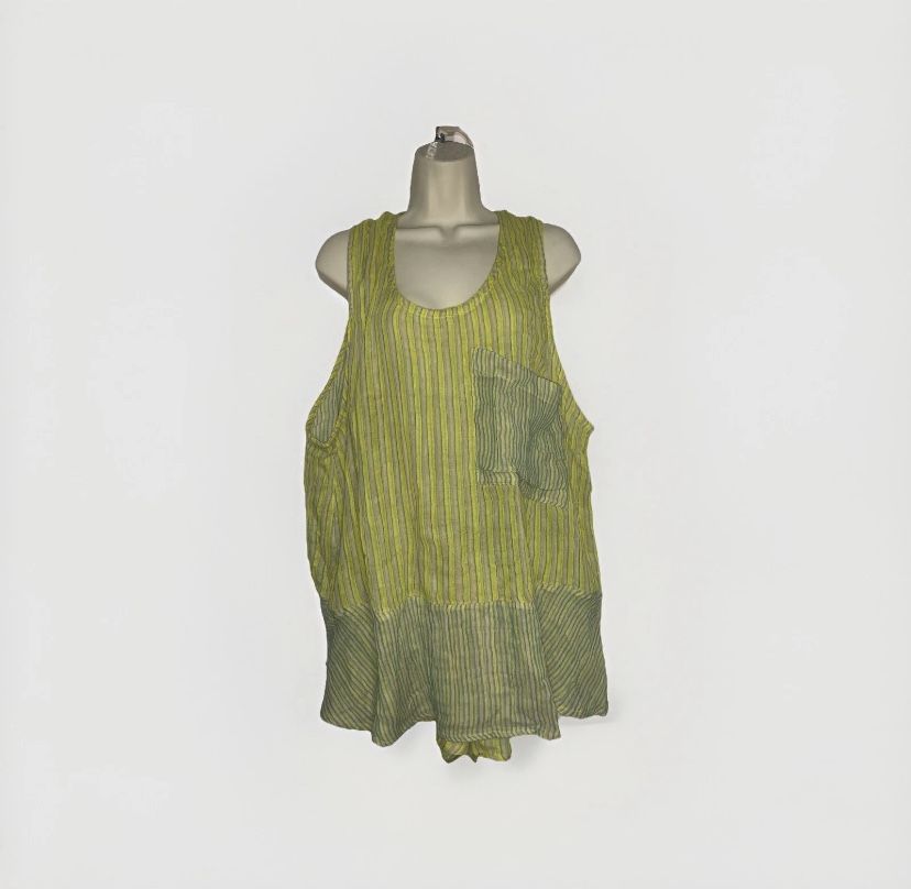 Xl Set Short Tank top Chartreuse Striped Sheer Cotton Breathable Free People