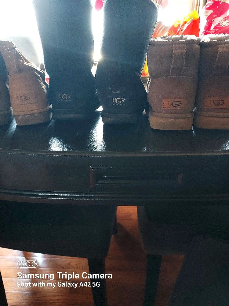My daughter (she's 32 now), after moving back home realized all her shoes won't fit in her closet, so she asked me to help move her shoes onto a new life. With that said I'm posting these UGG BOOTS and many more shoes here in the next few days. Close to two dozen shoes. She wears size 6 to 6 and a half. -$50 for all 3 pair -$20 each pair