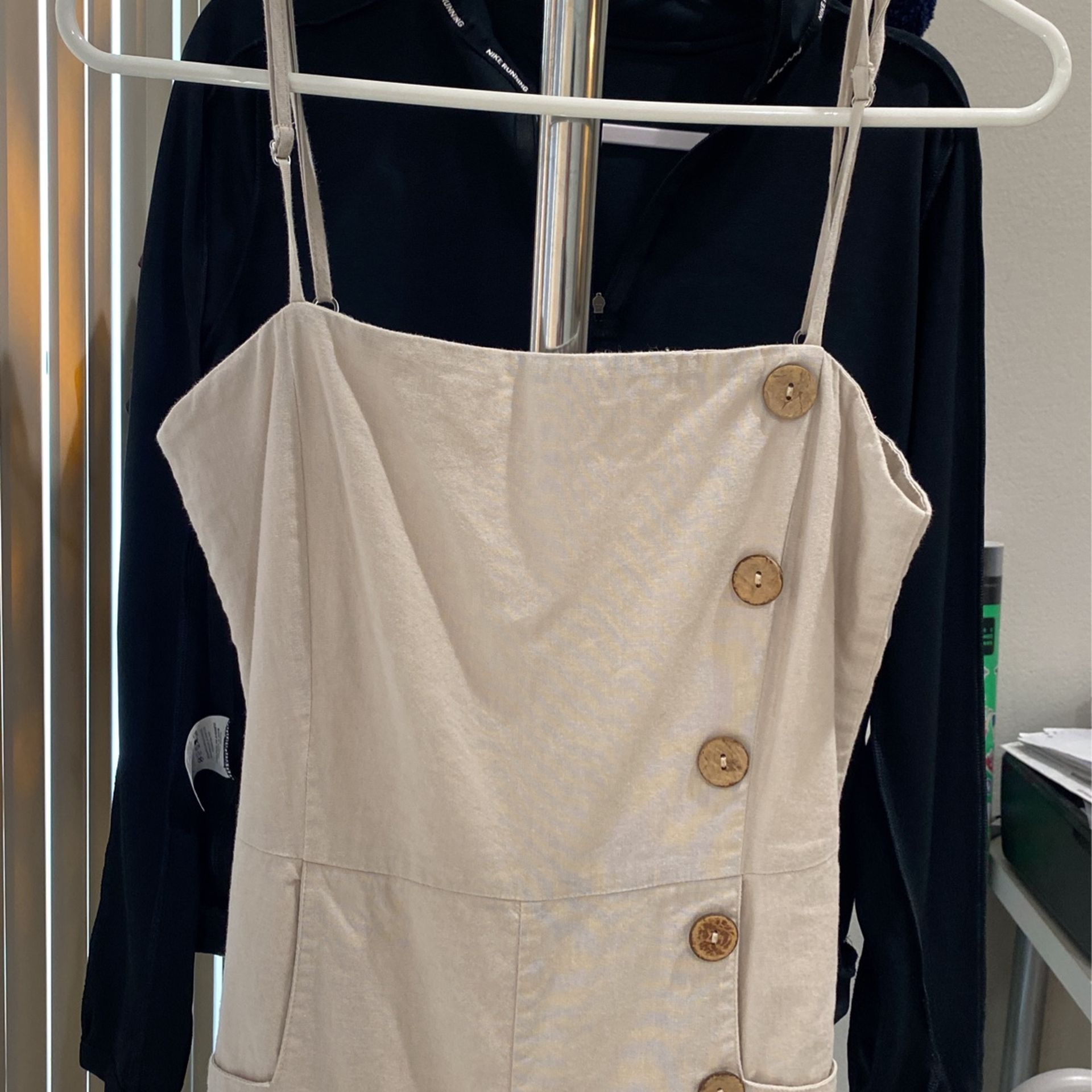 This beige linen jumpsuit is perfect for the summer because it’s super cooling. Style it white sneakers or sandals for a casual look or heels for a more elegant look.