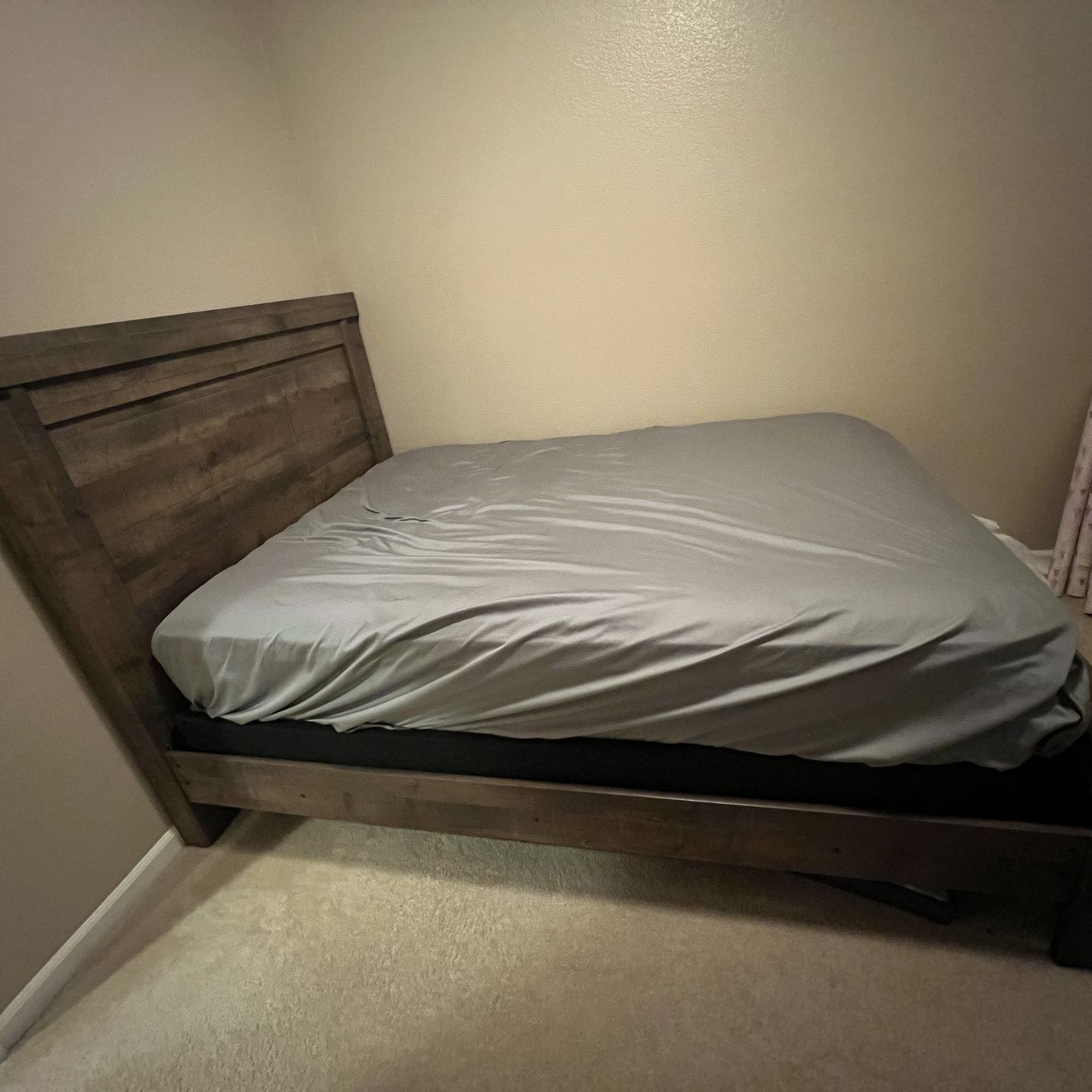 (Clean) QUEEN BED FRAME AND MEMORY FOAM HYBRID MATTRESS COMBO WOODFRAME LIKE NEW $400