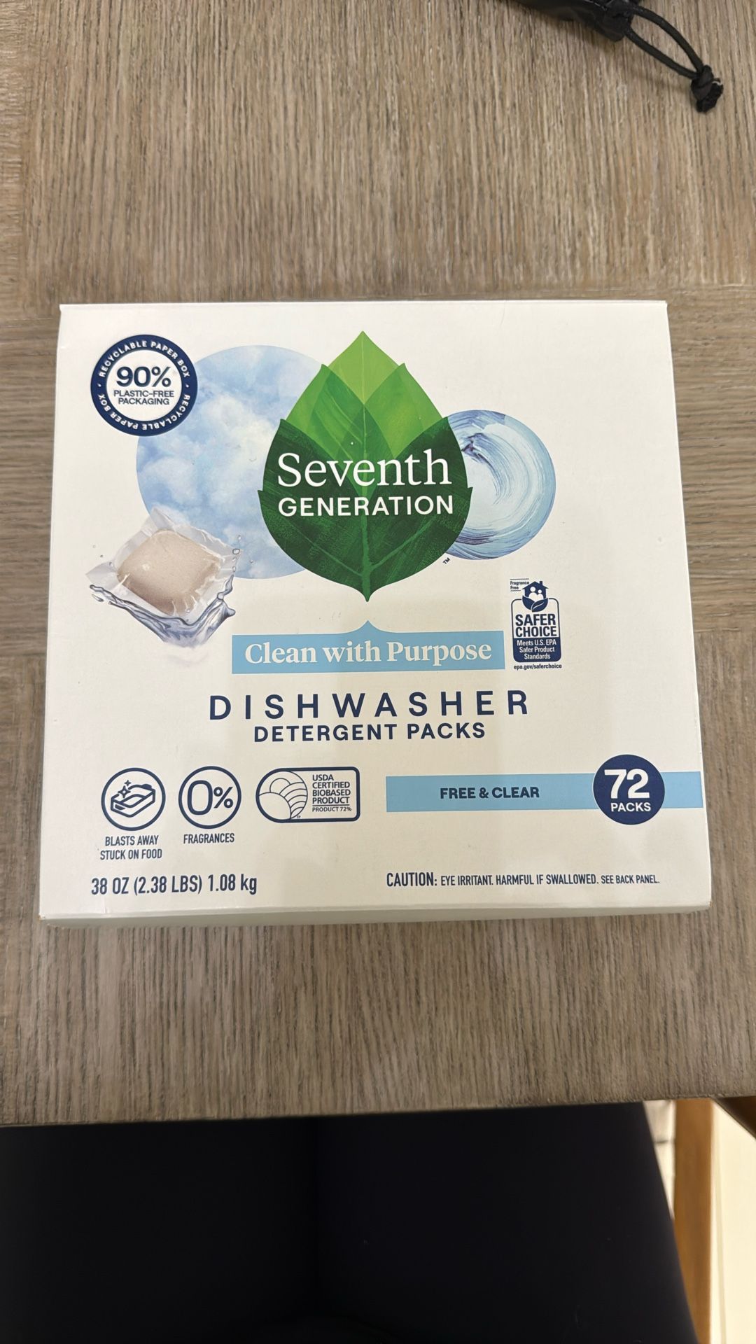 Seventh Generation Dishwasher Detergent 2 Boxes- 72 Packs for sparkling dishes Free & Clear Dishwasher Tabs