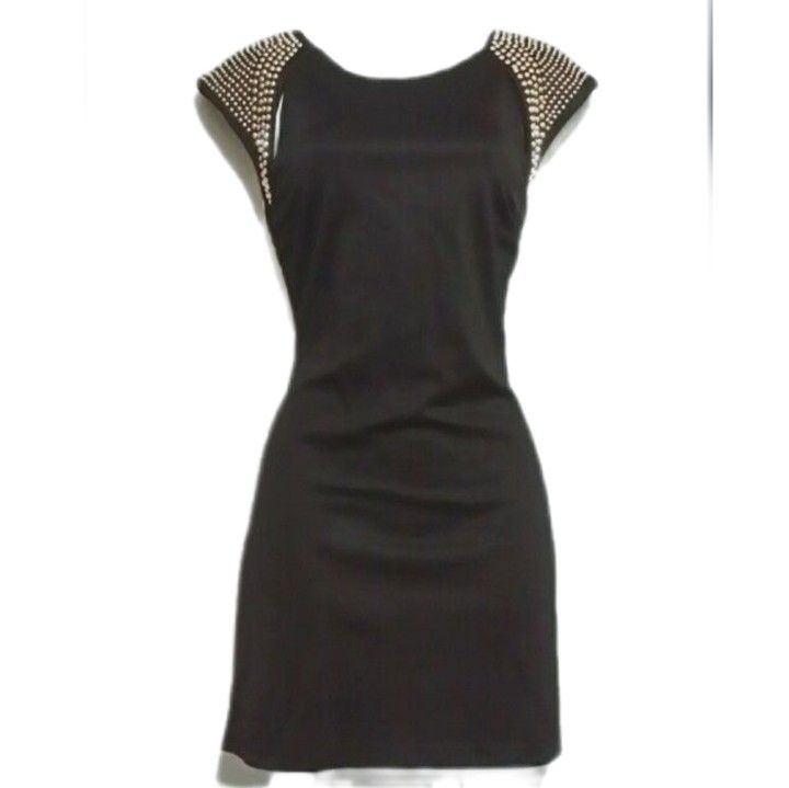 Black dress. gold studs/ padded shoulders. Stretches a little. Size Medium and XL . Formal Special event Special occasion Cocktail Fashion Short dress
