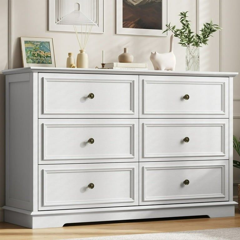 IDEALSOUL White Dresser,6 Drawer Dresser for bedroom,Retro Wood Storage Cabinet for Living Room assembled ensamblado please check the pictures for dimensions tiene un little Crack