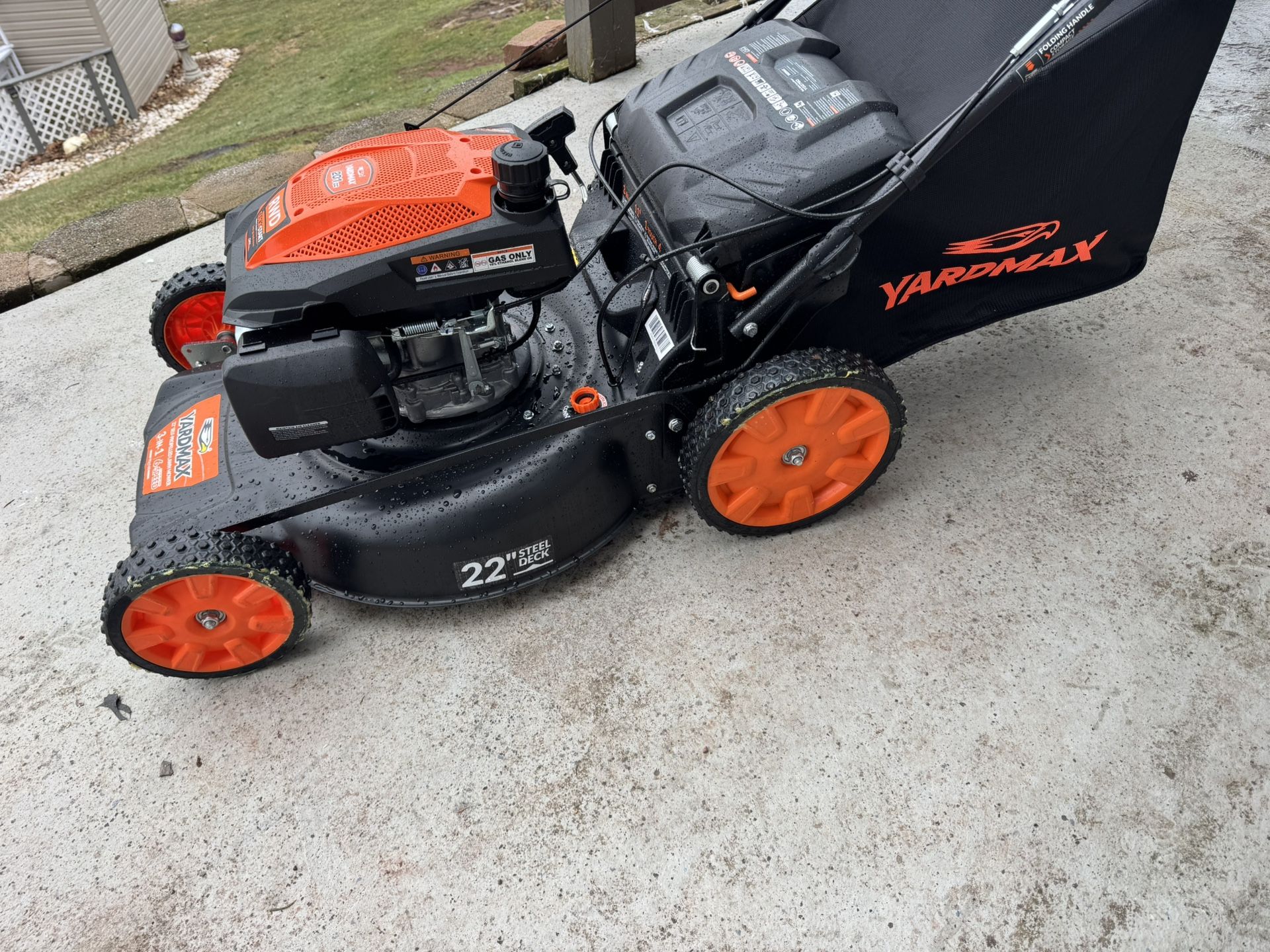 Brand New Yardmax Hi WheelSelf Propelled Mower 201cc Engine With 22” Cutting Deck, Bag, Side Chute.
