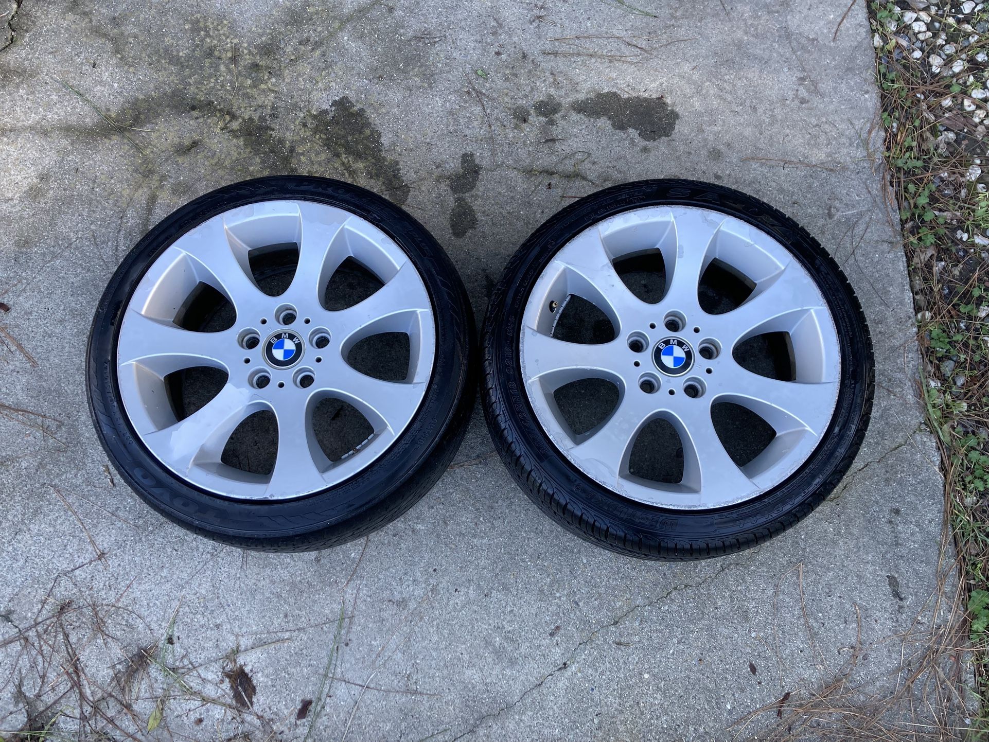 Selling 2 wheels from a 2006 BMW 330i E90 also fits other bmws (2) 18x8 et34 5x120 lug pattern No cracks or bends there is some curb rash/paint chips 1 has a little white paint idk why 1 tire is useable, the other one is almost bald both hold air just fine $150 or best offer for the pair or i can sell seperate Cash only Located in Pleasanton, CA e36 e46 e34 e38 e39 f30