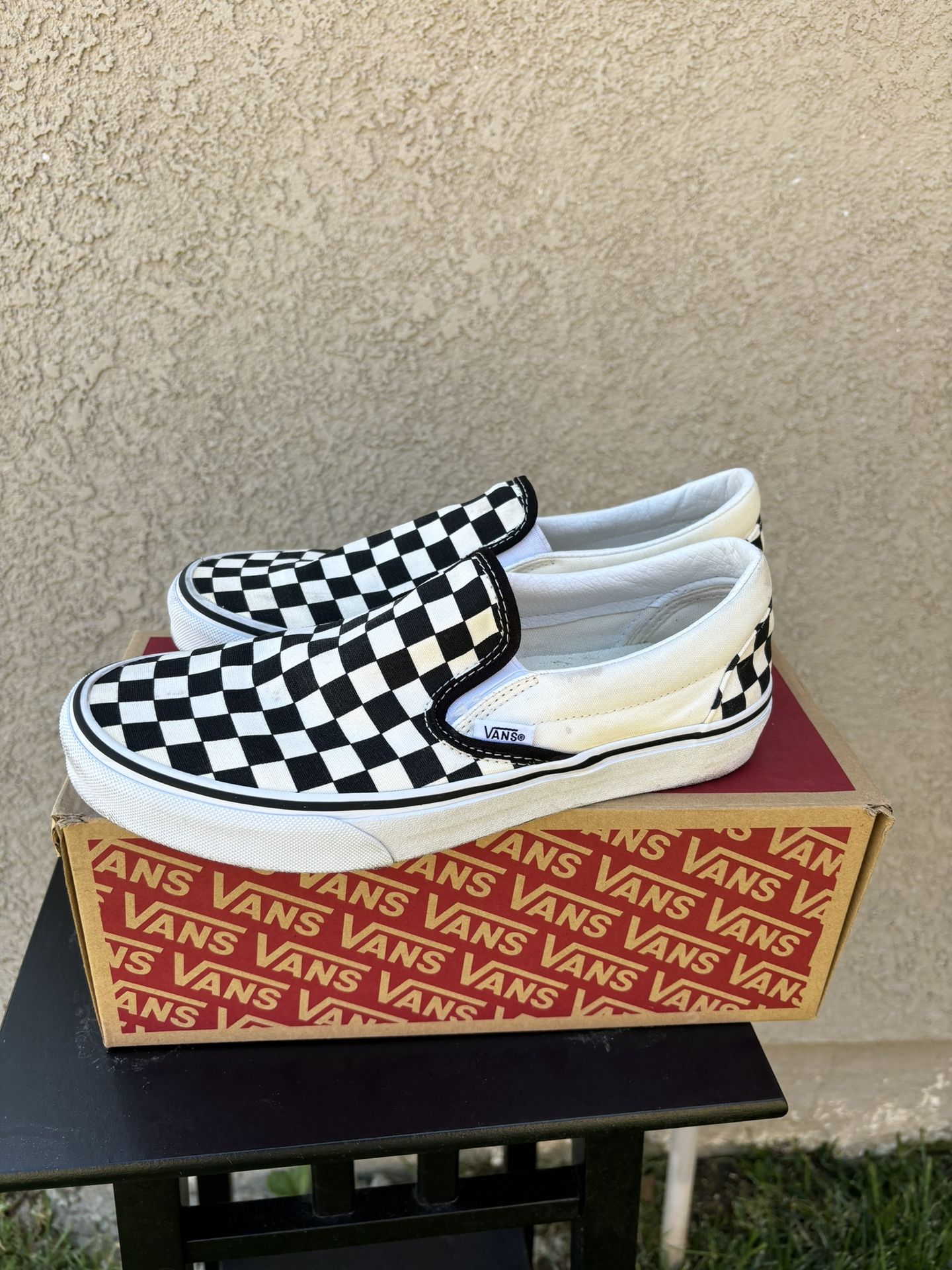 These are unisex checkered vans. men’s size 7.5 and women’s size 9 . Good condition only wore a handful of times.