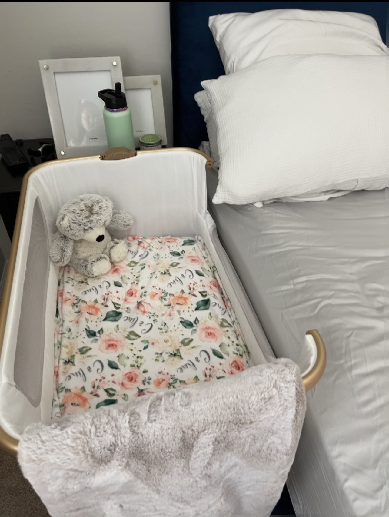 Bed side baby bassinet, adjustable rail, folding Bassinet. My daughter only slept in those bassinet for 11 days and then we moved her crib.