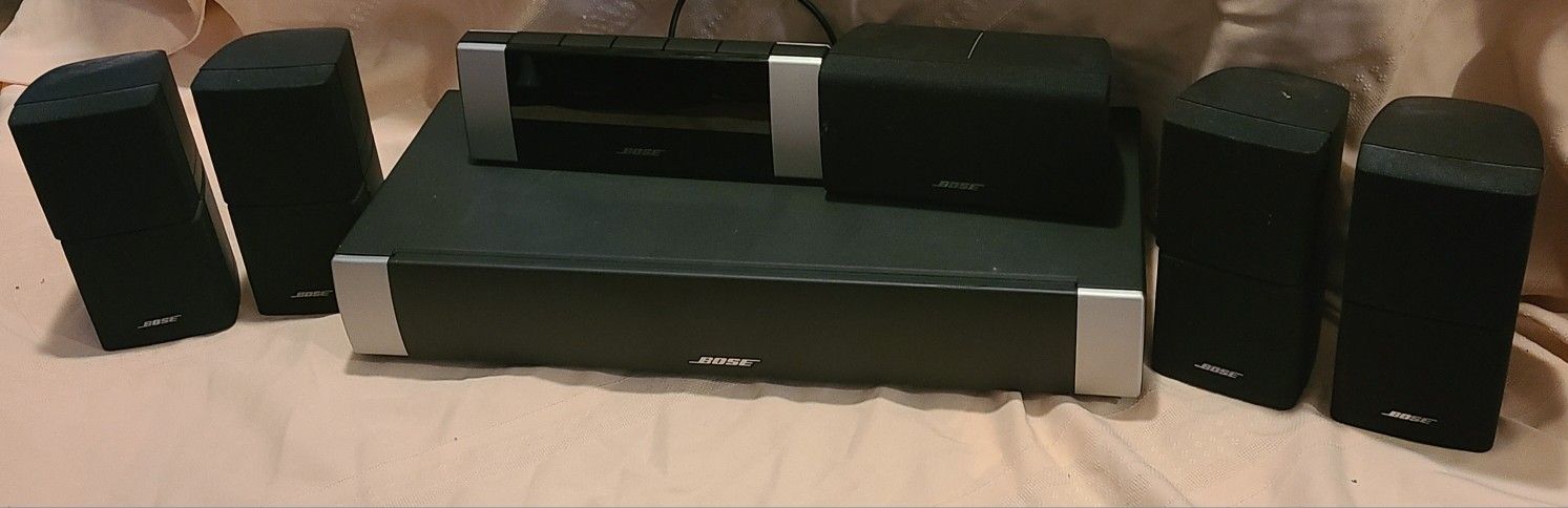 BOSE Lifestyle® V20 home cinema system corded. Used for a short time. Works great. Comes with 5 speakers/mc1 display/subwoofer/media center/all cords/adaptiq audio calibration system/ zip tie cord management/manual and setup paper/remote. Please reach out with questions:)