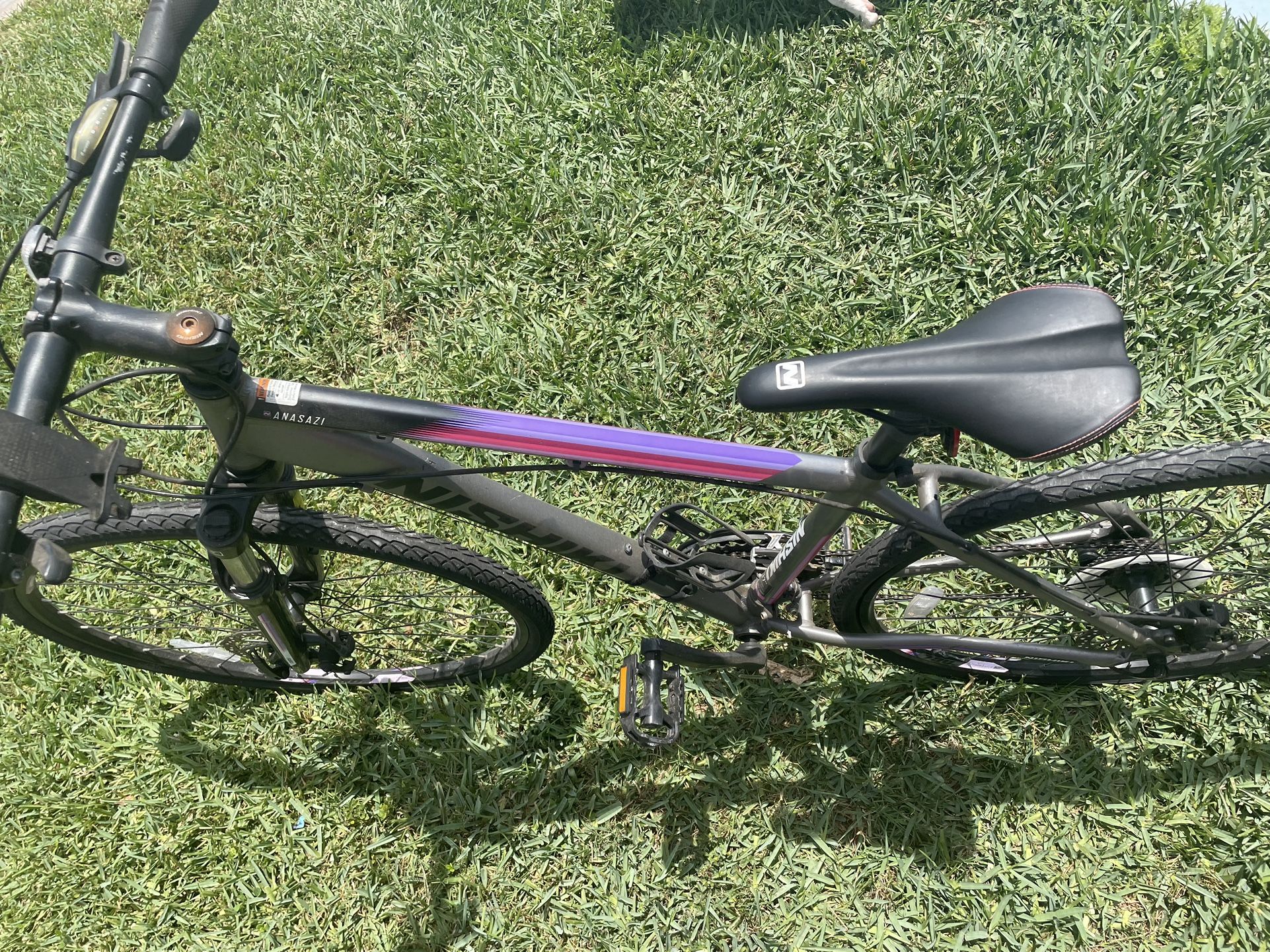 Great quality mountain bike! 17 inch tires the back tire has original and needs to be replaced that’s why this is so cheap. Everything else is great shape and will make someone happy for a long time. Best offer available
