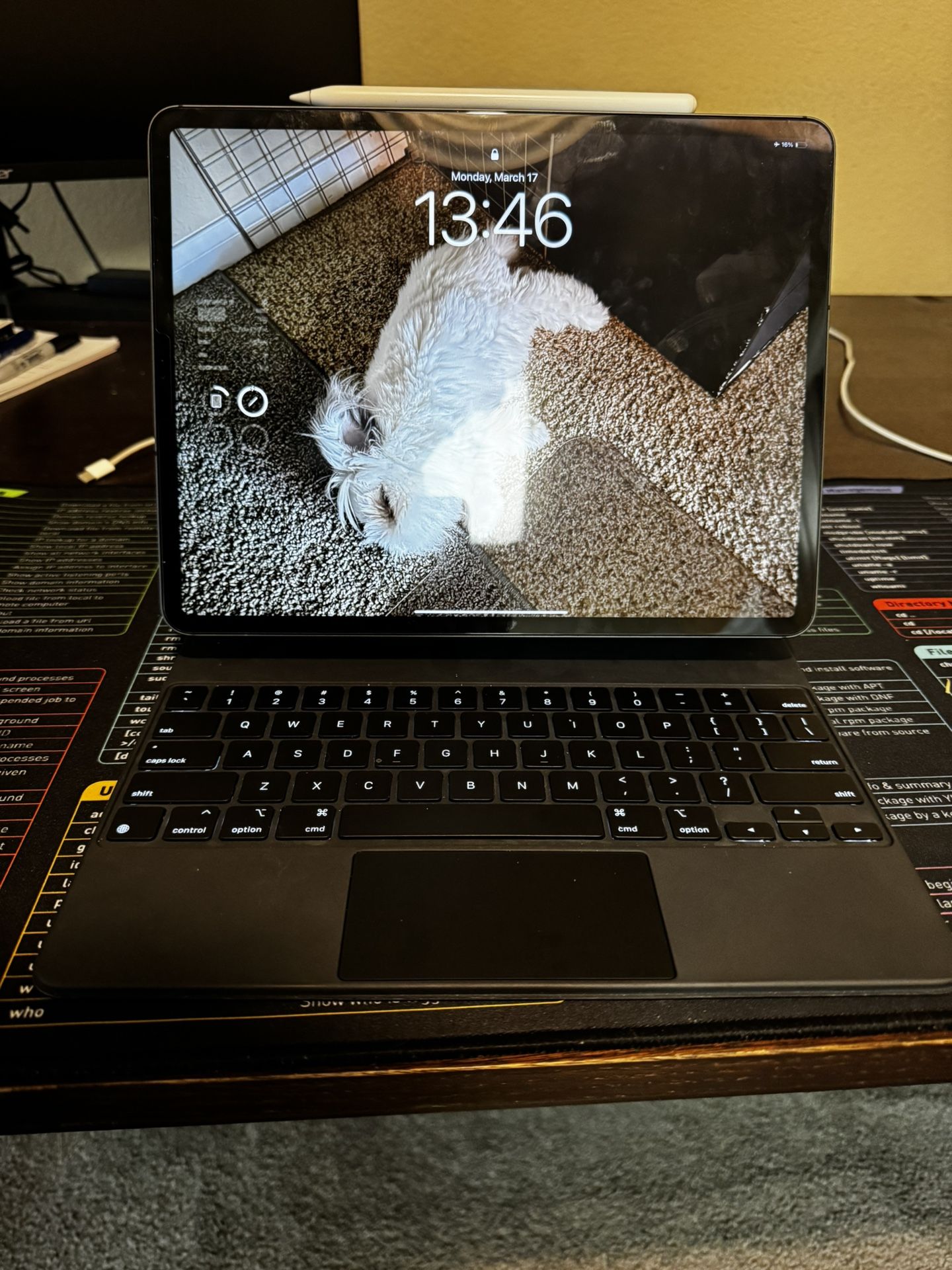 Lightly used Apple Magic Keyboard for iPad Pro (not mini). All buttons function perfectly. Backlit enabled. Charges using USB-C (cable not included.) -iPad NOT included-