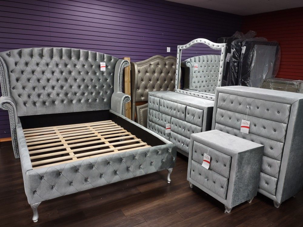 New 4pc Queen Bedroom Set queen Bedframe Dresser Mirror Nightstand