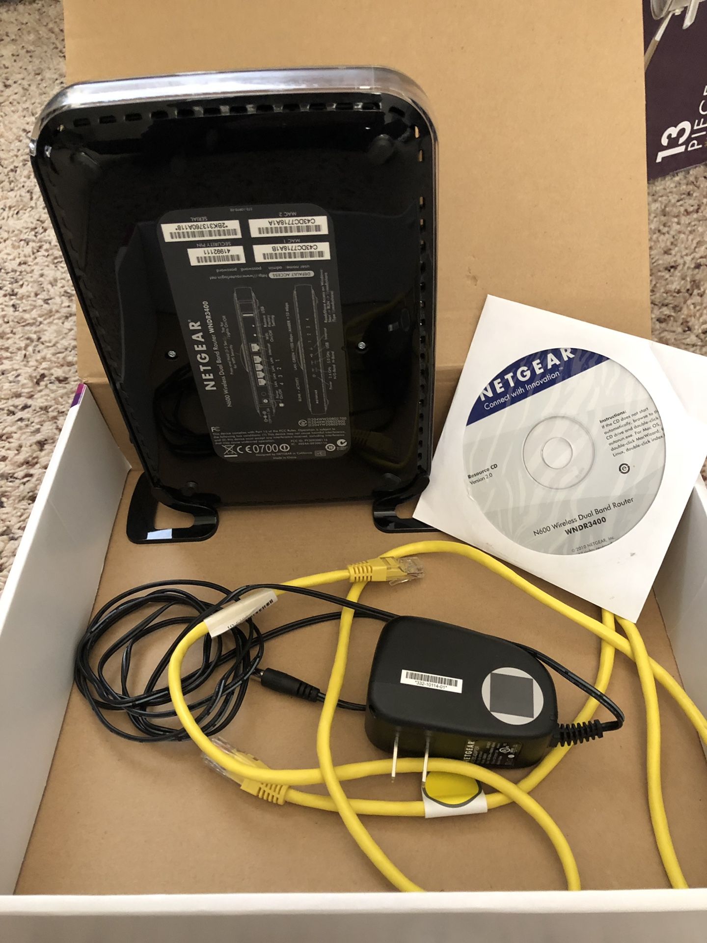 Netgear wireless dual band router WNDR3400 we are moving out of country comes with disc, power source , and cable