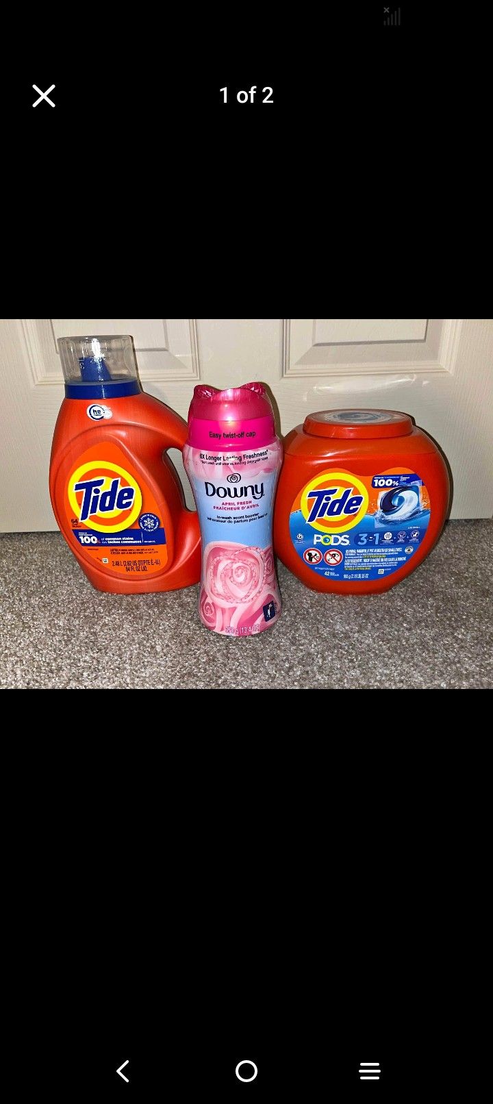 items for sale individually or as a package.. have any type of cleaning supplies you want, yes more than what's in the photos shoot me a deal for what items you want and I'll tell you if it's a deal Lots of tide (pods) & downy (beads) laundry detergent any kind you can think of just ask!