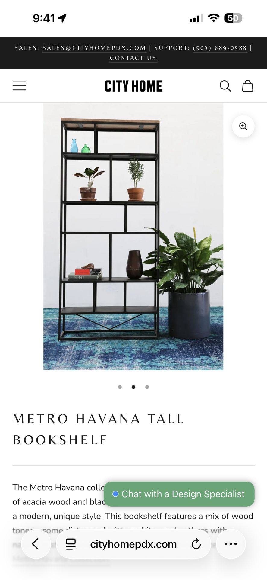 Have 2 of those bookshelf in a good condition. Msrp for each $798 + tax, shipping The Metro Havana collection is a crafted from a combination of acacia wood and black finished metal to create a modern, unique style. This bookshelf features a mix of wood tones - some distressed with a white wash, others with a natural rustic patina. Check out other matching pieces in the Metro Havana Collection. Dimensions: 35.5" L x 11.8" W x 78.7" H Weight: 60 lbs. Materials: solid acacia wood, black iron