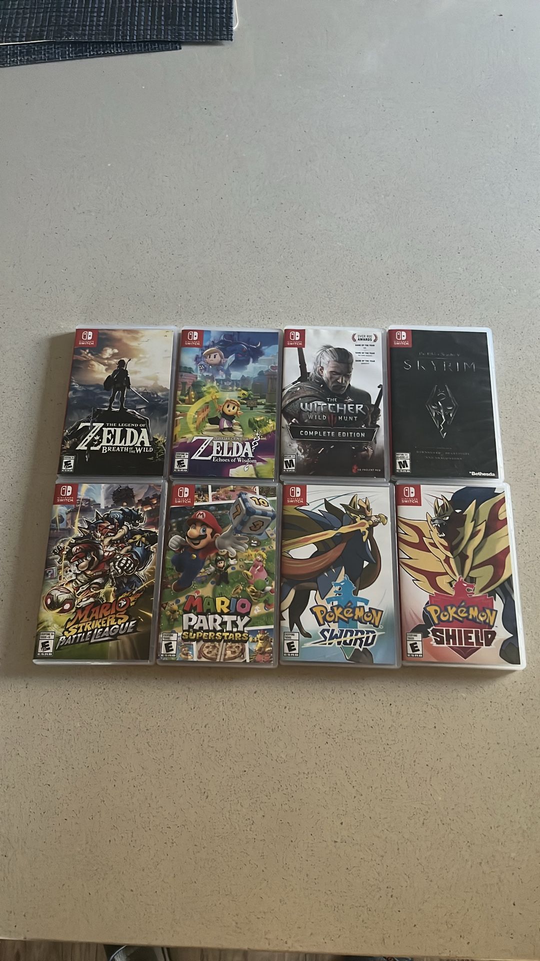 Working $35 each Zelda breath of the wild Zelda echoes of wisdom The Witcher wild hunt Skyrim Mario strikers - SOLD Super Mario party - SOLD Pokémon sword Pokémon shield