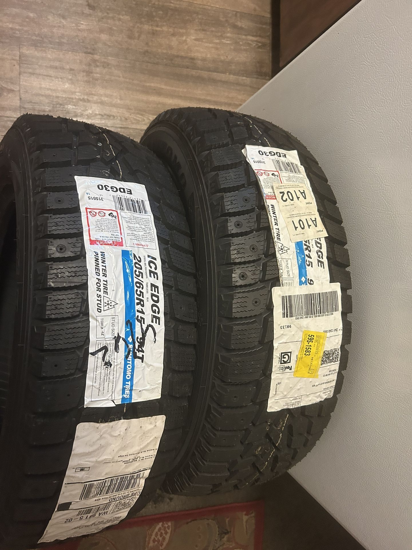 Two Brand New Special Cold Weather Tires that are Snipped and can have studs put on and removed. The colder it gets the better they grip! So you probably won’t ever need to put studs on. They are for 40 and below and they love when it gets 20 and lower. Incredible tires