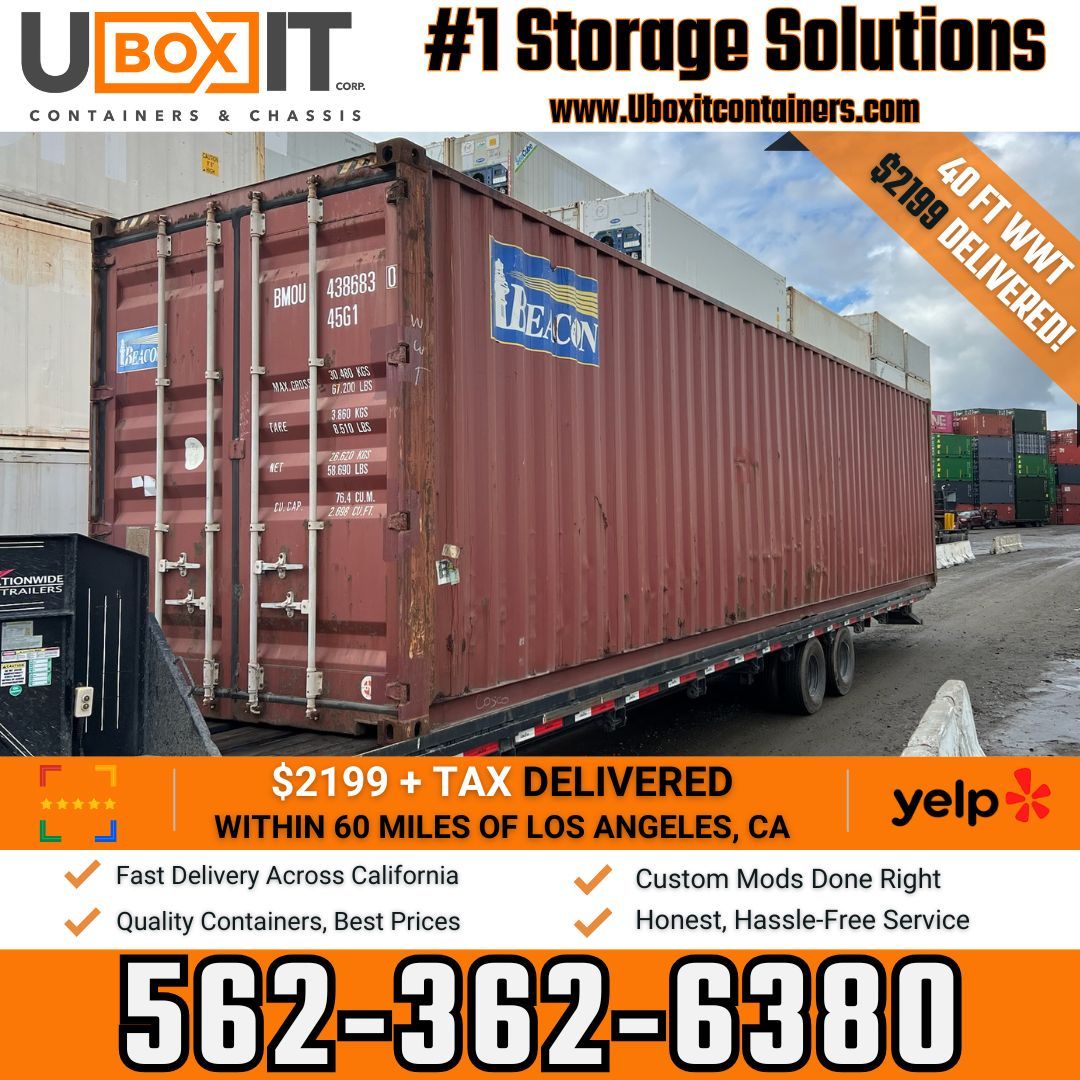 40ft Wind & Watertight (WWT) shipping container available now. Perfect for storage, job sites, construction, business use, or personal storage. ✅ No holes ✅ No leaks ✅ Solid doors & locking bars ✅ Structurally sound ✅ Ready for immediate delivery 🚚 DELIVERY INCLUDED within 60 miles of Los Angeles, CA Fast turnaround — we deliver across Southern California Great for: • Storage container • Job site container • Construction storage • Equipment storage • Business / warehouse overflow • Farm or residential storage Optional upgrades available: • Roll-up doors • Side access doors • Windows • Paint (any color) • Electrical & office build-outs 📍 Local, established container company ⭐ Honest pricing — no hidden fees 📞 Call or message to check availability Keywords: 40ft container, shipping container, conex box, storage container, cargo container, wind and watertight, WWT container, construction container, job site storage, steel container, shipping container for sale, Los Angeles containers, SoCal containers, delivered container Call/Text: 562-362-6380